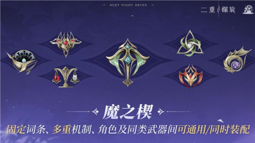 二游的核心玩法之一是養(yǎng)成,養(yǎng)成則繞不開(kāi)對(duì)隨機(jī)詞條的強(qiáng)化。市面上許多產(chǎn)品都采用了隨機(jī)詞條拉長(zhǎng)玩家的養(yǎng)成周期,期間也勢(shì)必會(huì)浪費(fèi)玩家很多時(shí)間成本,這也是導(dǎo)致大家都覺(jué)得二游過(guò)肝或者正反饋不強(qiáng)的主要原因。為了區(qū)別于傳統(tǒng)二游里的同質(zhì)化養(yǎng)成套路,《二重螺旋》在養(yǎng)成玩法上做了減法,其核心養(yǎng)成系統(tǒng)——魔之楔,采用了固定詞條設(shè)計(jì),玩家強(qiáng)化升級(jí)再也不用賭詞條,所見(jiàn)即所得。而且不同角色、武器均可以配備同一套魔之楔,為玩家大大降低養(yǎng)成消耗的時(shí)間成本。