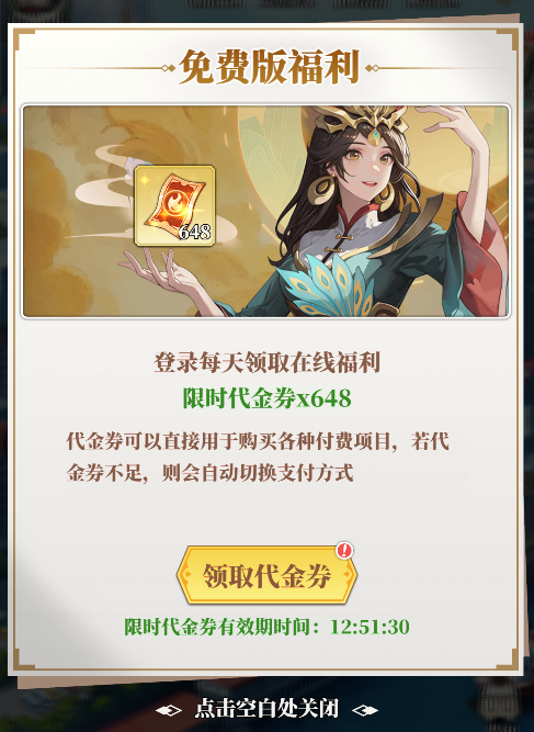 3.每日可領(lǐng)免費的648游戲內(nèi)代金券