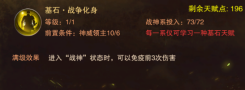 這里是在攻擊與防御101系的大天賦選擇完之后,點(diǎn)出戰(zhàn)神系的終極天賦。